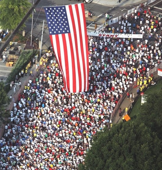 It took so long to get out of the station and I had to pee! The porta-potty line was out of control and this is where being a local has it's advantages - I just cut around the block and went into Publix. The manager was even welcoming people in to use the facilities which were clean, air-conditioned and had no wait at all. Thanks fine people at Publix.By this time it was start time. I just couldn't imagine what 60,000 people looked like on one of the most familiar roads in my city. It was a sight to behold!